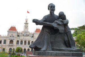 昔、ホーチミンさんの銅像は座っている姿だったのです。